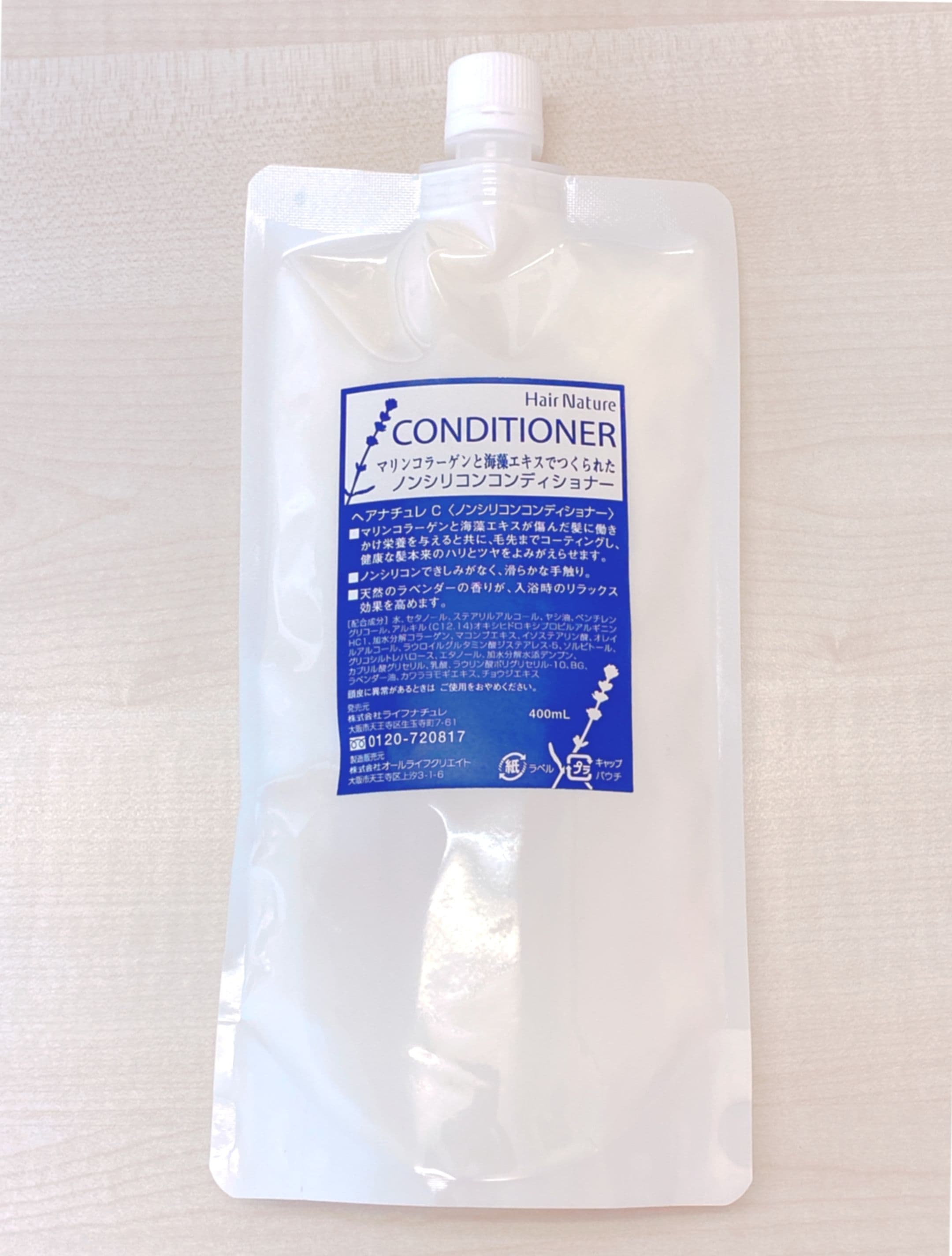 ヘアナチュレコンディショナーは安心のノンシリコン。マリンコラーゲンと海藻エキスが傷んだ髪に働きかけ、栄養を与えるとともに毛先までコーティングし、健康な髪本来のハリとツヤをよみがえらせます。